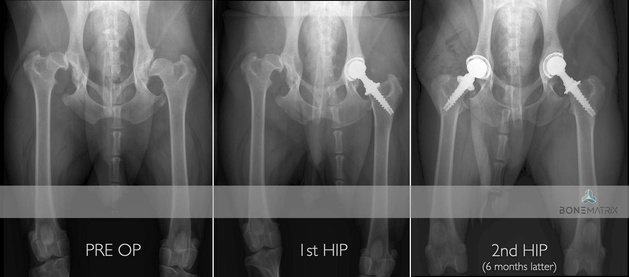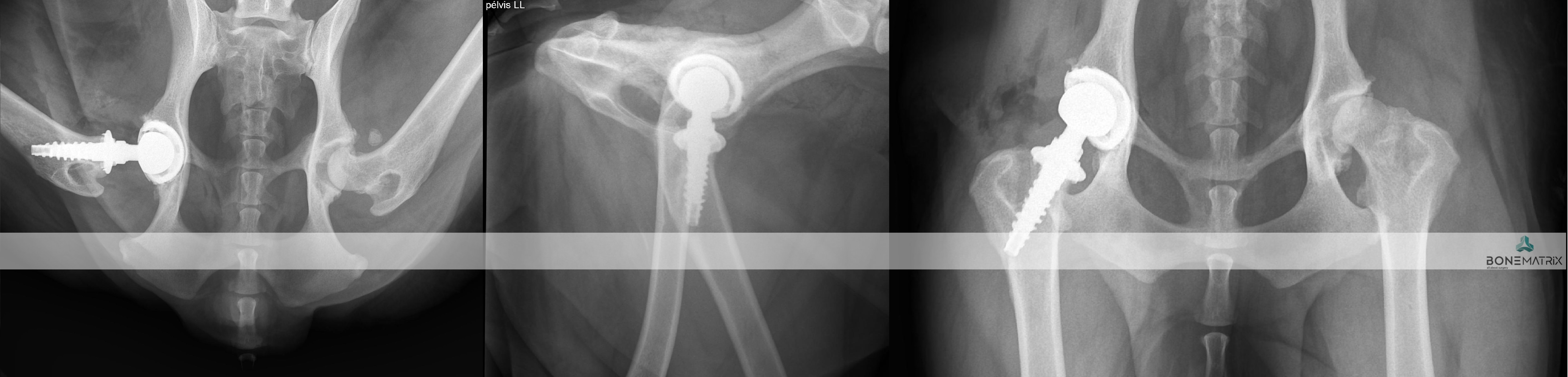 Caso o seu animal seja adulto e a patologia for detetada no paciente as opções curativas resumem-se à prótese total de anca, onde toda a articulação é substituída por uma articulação implantada.