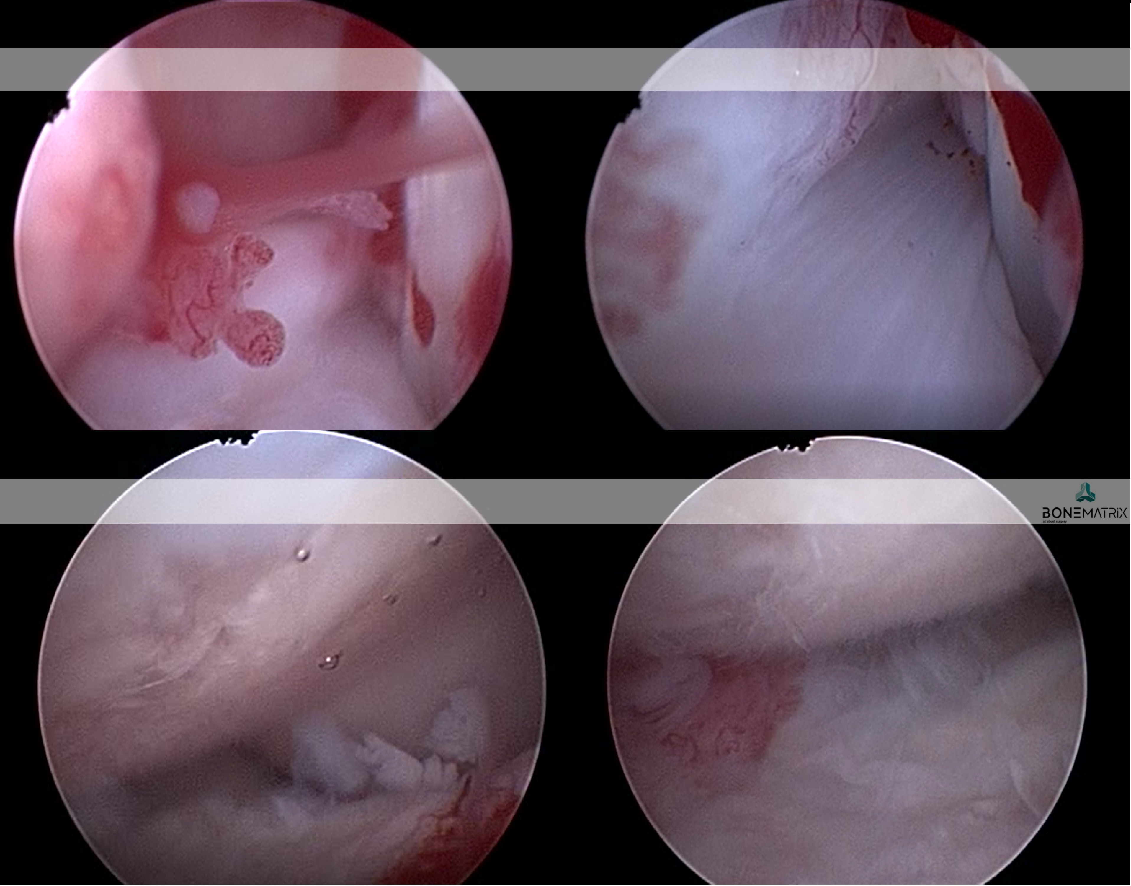 Com o objetivo de adereçar as lesões cartilagíneas encontradas na articulação poderá ser recomendada a realização de artroscopia (para desbridamento destas lesões).
