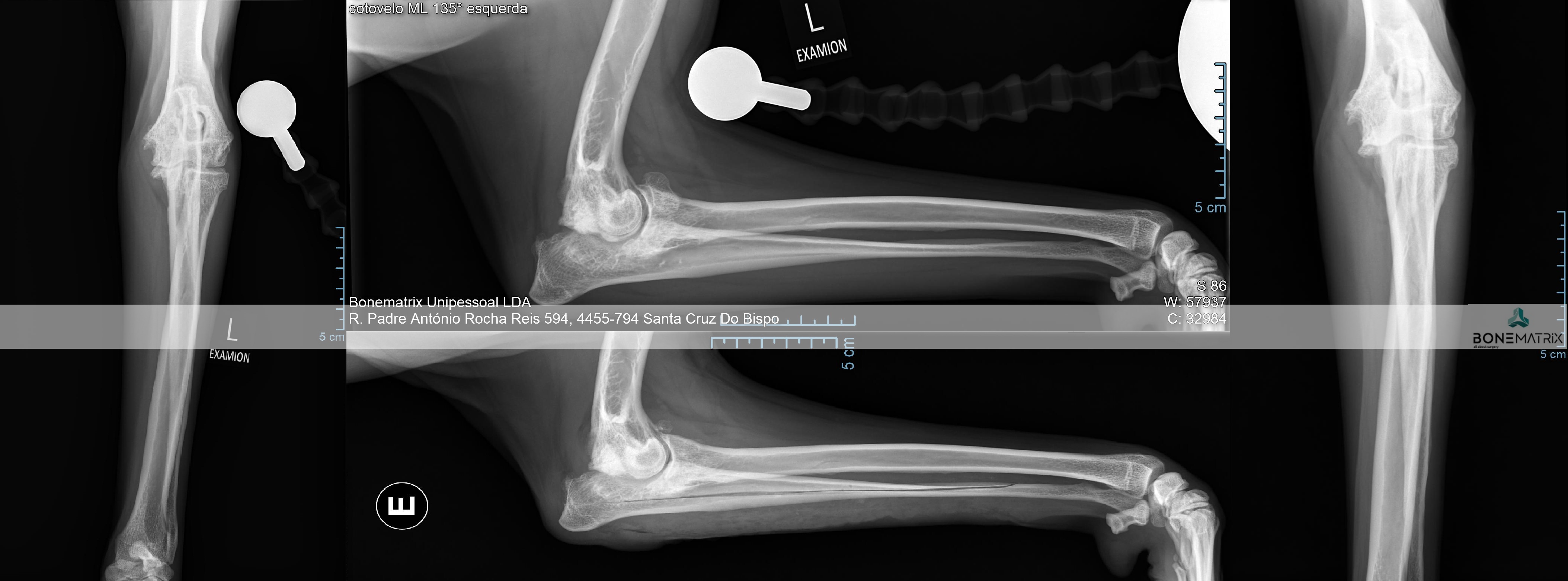 Este exame complementar de diagnóstico consiste na realização de um estudo radiográfico que define a probabilidade de desenvolvimento de displasia de cotovelo no paciente.